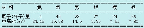 表 常用氣體和金屬的原子(分子)量和電離能
