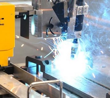 焊接機(jī)器人是從事焊接(包括切割與噴涂)的工業(yè)機(jī)器人,它主要包括機(jī)器人和設(shè)備兩部分。其中,由機(jī)器人本體和控制柜(硬件及軟件)組成;而焊接裝備,以弧焊及點(diǎn)焊為例,則由焊接電源(包括其控制系統(tǒng))、送絲機(jī)(弧焊)、焊槍(鉗)等部分組成。對(duì)于智能機(jī)器人,還應(yīng)配有傳感系統(tǒng),如激光或攝像傳感器及其控制裝置等。